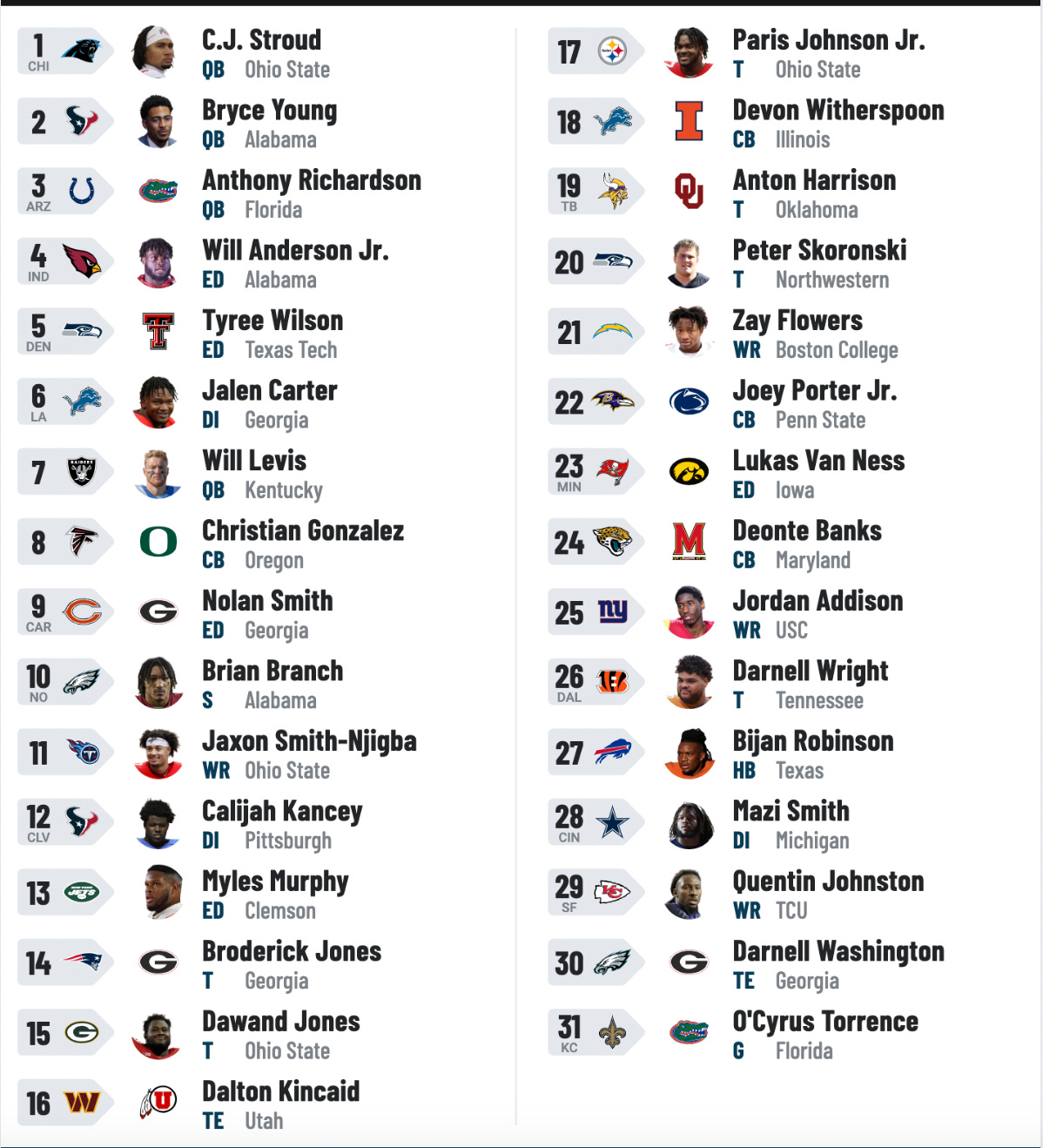 Mocking the first round of the 2023 NFL Draft - includes trades